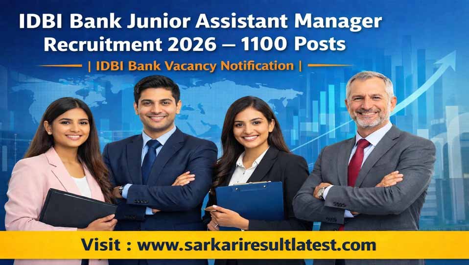 IDBI Bank Junior Assistant Manager Recruitment 2026 has been released for Junior Assistant Manager (Grade O) posts across India. A total of 1100 tentative vacancies are available in various zones. Eligible candidates must have a graduate degree and at least 2 years of relevant banking or financial services experience. Candidates can apply online through the official IDBI Bank careers portal. Sarkariresultlatest.Com provides the latest updates on government jobs, exams, and admit cards.